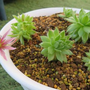 夏にだいぶ痛んだラブリーレディ。生き残った株をいくつかに分けて植え付けたところ、なぜか小さい株一つに花が一輪だけ咲いた。花を咲かせた株は枯れるかもしれないけど、これから葉の色が変化する頃までには鉢いっぱいに増えてほしい。