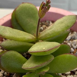 多肉植物 コチドレン属 ゴルビュー 春を吹っ飛ばして夏が来たのですか⁉️と思うくらい今日は暑いです💦 ゴルビューさん、まだ手のひらサイズで小さいのですが これは花芽?なのかな? 室内組にいましたが 2日前よりベランダ組に移動しました。無事咲いてくれるかな😊