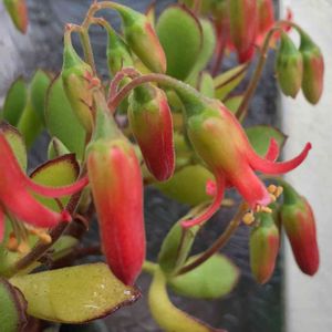 タコ祭り〜🐙₍₍ ٩(* ॑꒳ ॑* )۶ ⁾⁾🐙 あ、こっちかな→🔔チリンチリン(*ˊᗜˋ*)♬ コチレドンはこんなにお花咲かせても弱らないのかな? 可愛いのにゴルビュー…イカツイ響き😂❤ そしてペタペタする葉っぱ😂🌿