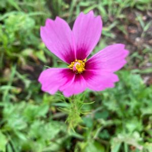 幼稚園へ お呼ばれして 帰り際 お邪魔さたら 前日のコスモスの花近くに もう1輪の コスモスの花が 咲いてた