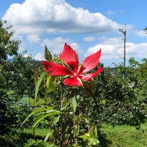 ひとまず寄り道で実家に着きました。1060km、24時間のドライブでした。 みなさま、お気遣い、ご声援ありがとうございました😊 今夜はまた30km程運転して、職場指定のホテルに泊まらなければならないのですが。 実家の庭で咲いてましたが何の花だろ?
