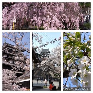 こんにちは。🥰 松江城お城祭りが開催されています。🌸 サクラと松江城、💓♥️❤️な景色です。 ソメイヨシノは満開ですが御衣黄はまだ 薄緑の蕾が多くう少しかな? 垂れ桜も咲いています。💗
