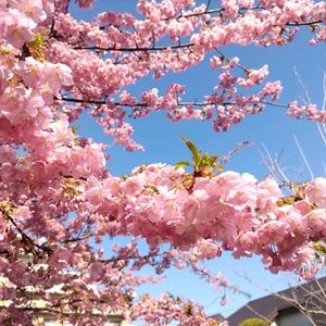 今日はなんて気持ちいい日です。 青空に庭の河津桜が映えています。満開の河津桜 やがて花ニラでいっぱいになる庭です。