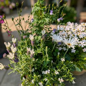 今日のお花ラベンダーです ①5月の寄せ植え白ラベンダー②妹の玄関前のラベンダー③ラベンダー④アガパンサス⑤ヤマユリ