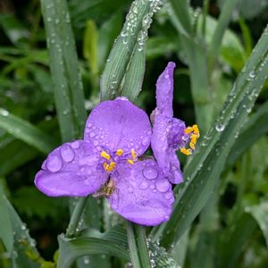 今日のお花ムラサキツメクサです ①ムラサキツユクサ②トラディスカンチア(ツユクサ科)③コクリュウの花④アゼムシロ⑤セリの花遊び