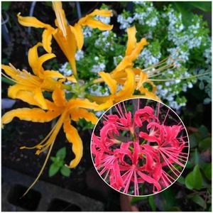 我が家の🌸曼珠沙華🌸 黄色は今、満開に 赤い方は今年少しでも😰😓😓モグラやネズミ除けになればと苗を頂き🍀🍀 畑のアチコチに植えてみました😂😂🌵