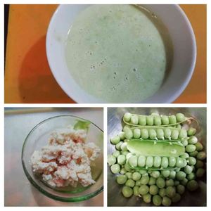 臨時のんのん食堂第二弾🍽️ 頂いたお野菜のご馳走😄 🍽️グリンピースのポタージュ(見栄え悪!) 🍽️明太子ポテトサラダ(見栄え更に悪!) グリンピースが、びっしり詰まってます。