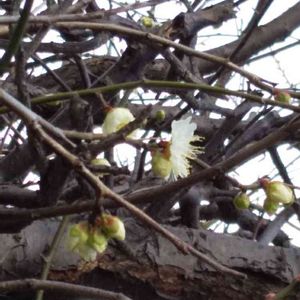 みさと公園の、白梅です。 やっと咲きだしました。 未だ蕾が有るので、来週位迄は大丈夫かな⁉️