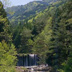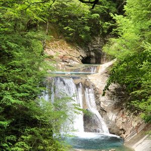 新緑の西沢渓谷。七ツ釜五段の滝。