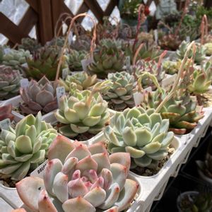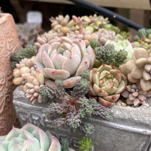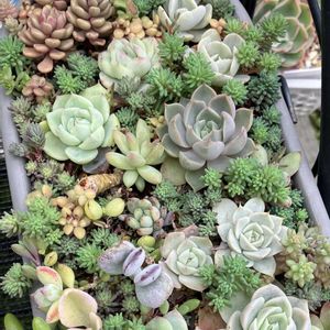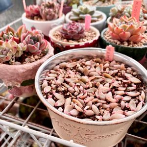 お久しぶりです😊🍀💕 だいぶ暖かくなり多肉達もスクスク(*´ω`*)🌵💗成長してますね✨ 雨☔️降るみたいなのでビニールカバー掛けてますが 寄せ植えの水欲しそうな子達は出してます👍 セダムがシワシワ気味な鉢だけ〜 自然の水やりで⸜🌷︎⸝🚿