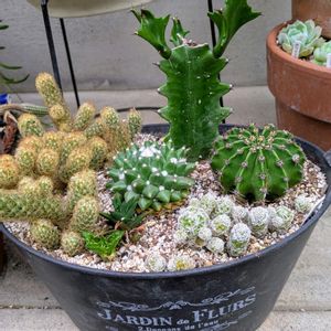 こんにちは! 曇り空☁ジメジメしてます😞 サボテンとハオルチア?を集めてみました😊 黄金司かな。。。左端の子はかなり増えてます❣️ 花が咲くまでここで様子見ますね🎶🎶