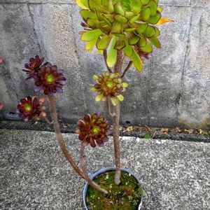 お迎え時は1頭でしたが増えて参りました😺🩷 アエオニウム・ピンクウィッチさん😻🩷 💜🤍💚🧡 ガレージでハンギング中で 外壁塗装の影響を受けていないので 発色が衰えませんでした😺
