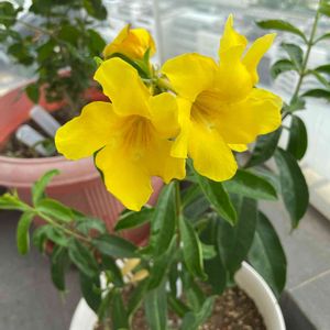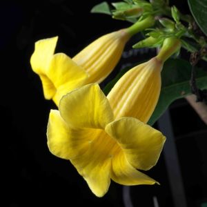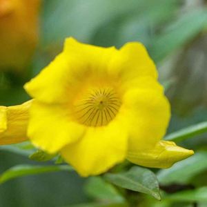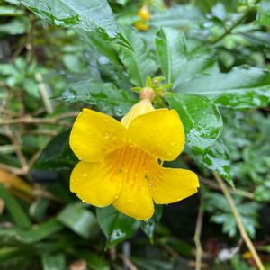 初めましての花 💛 ヒメアリアケカズラ 💛 (姫有明葛) キョウチクトウ科 アラマンダ属 の半蔓性の常緑低木 ブラジル原産 別名 アラマンダ・ネリーフォリア …かなと思うのですが ( ˙_˙"٥)