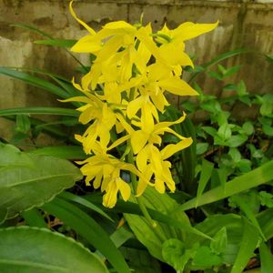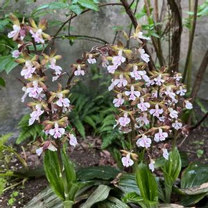 おはようございます⛅️昨晩の雨でお顔を洗顔した「エビネ」蘭満開🌼🌼🌼🌼🌼汚れ綺麗に落ちました。近所のご婦人から頂き五年以上、茶色もあったが⁉️今のところこれだけ咲きました😂
