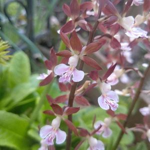 エビネ ジエビネとキエビネ、タカネエビネの交雑種でしょうか…。庭で自然にこの色が生まれました!
