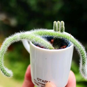 ヒルデウィンテラ属(現クレイストカクタス属)、カラデモノニス。 紐サボテンに挑戦してみたくなり、ネット通販でお迎えしました。 通称、猫のしっぽ。 て事で、我が家のにゃんこのしっぽにも登場してもらいましたよ。🤣