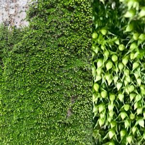 🍀昨日の朝散歩での苔 大木に張り付いた綺麗なコケ ビロードのよう💚 🦠苔の中の小さな白い粒々を 大きくして観察🧐 ❄️花のようだけど なに苔かな?