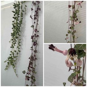 ☁️曇り空で湿気すごいです💦 🍀長〜〜い多肉 エンジェルティアーズは斑がすっかり消えました🥲 ハートカズラはちょっと見ない間に花芽が沢山🌸 ♪写しきれない長多肉 いつしか私に絡みつく〜🎶 ♪天城越え 口ずさんでいました😅笑