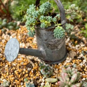 ☔️台風の影響の雨です 勢力大の台風 風雨に気をつけて 🍀小さなジョーロに何種類か植えたのですが このセダムだけ残りました 狭かったよーと言ってるような? また狭い所だけどがまんしてね 植え直しします😊💦