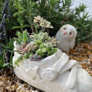 💕小さな靴にちまちま寄せました👟 吊り鉢に住んでいるフクロウといっしょに🦉📸 秋ですね🍁 💛お隣の金木犀の香りがベランダまで届きます いい香り🌼