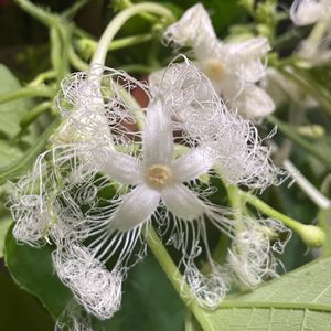 ❄️カラスウリを何本か切って部屋で鑑賞❄️ 蕾からここまで開きましたが 水揚げが悪かったのかこれ以上は開きませんでした ❄️白いレースが素敵 毎年楽しませてくれます💓 またカットしてみようと思います♪❄️