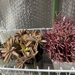 きのうとは打って変わって暖かくなりましたね 🍁紅葉しているリプサリスは株分して一つは部屋に入れました 部屋のはだいぶ赤さがさめてきましたよ 🌴我が家に勝手に来た不死鳥🦅 あちこちにお子様飛ばすので見つける度に ここに連れてきます 今はお子様いないけど そのうちに暴れだしますね やれやれ🥹💦