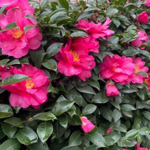 家のサザンカ🌺 冷たい雨の中生き生きと沢山咲いています 🌺🌺🌺🌺🌺🌺🌺🌺🌺