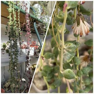 ベランダをプチプチで囲ってあります 水が溜まりやすい所に小さな穴を開けてあるのですがそこから雨漏り 当然ですネ😅💦 ポタポタ落ちる所に穴無しの吊り鉢下げて置いたらまぁ雨水がよく溜まる 水捨てないで溜めてます 🍀小さな多肉さん 縁が赤くなっていい感じ 小さいまま?それとも大きくなるの?これから楽しみです♪