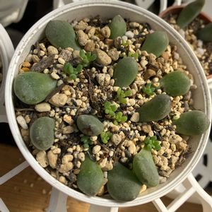 小さな6cmのポットに5個の小さな可愛いらしい苗。数ミリしかない落ちた葉からも子供が生まれている。生命力の強さに感動!