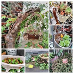 寄せ植えを、やり直してみました。 もうバラバラにセンス良く植えるのは無理なので、同じ種類を近くにしてみました。さっきよりマシな…気が…します…。 寄せ植え、難しい💦