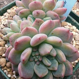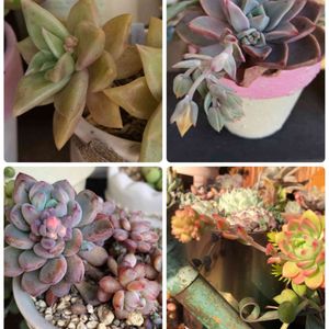 多肉さんたちの花芽💕 左上 シテリナさん ウチに来て2年 初めての花芽🌸 右上 先月プーさんからもらった子 もうすぐ咲きそう🎵名無しさん ピンクで可愛いの 名前わかる方 教えて下さい😊 プーさんありがとね~❤