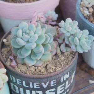 名前の記録✨ 最近の新入りちゃんをコンクリ枠?に寄せ寄せ♥ 過保護にしたくなるけど… 雨ざらしがいいのかなぁー😌