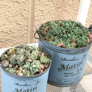 セダムが盛り盛りになってきた🤗💕 三密だからソーシャルディスタンスにしなきゃね😆 ラウ165とプロリフェラ♡ どちらも葉挿しを転がしてたら勝手に増えてくれるから寄せ植えに重宝してます☺️ ラウ165てエケベリアとセダムがあるのかな? プロリフェラもランナーで増える子とこちらと2種類あるね😊