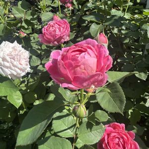 こんにちは♪車の中暑くて夏が近づいてるんだなあと思いました☀️ ①クリスティアーナ 今年も満開 ②ローブデコルテ お気に入りのバラです♡ ③アントニオガウディ 咲き始めました♪ ④マイローズ 一年中咲いてます。病気もしないし花数多くて花保ちいいしすごいバラだと思います。 ⑤ビアンヴニュ 花が大きいから雨でだいぶカットしましたがまだ元気に咲いてます。 クリスティアーナは2年前まで数年間ブッシュ仕立てにしてました。毎年長く枝を伸ばすので上の方だけ誘引して下の方は段差剪定に仕立ててあります。花数すごいです。 最初の1、2年は蕾の数と根の成長が釣り合いが取れてなかったようで蕾がパラパラ落ちてましたが現在どどんと根を張ってどっかーんと咲かせてくれてます。 葉の病気はまったくないしこれ作った人凄いといつも思います。