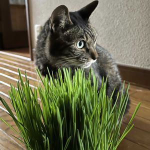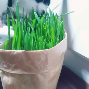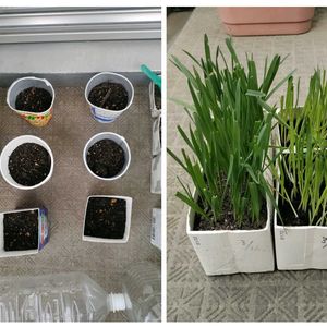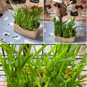 猫草🌱すぐ枯れるから自分でタネから増やしてみたよ🐈 🐶も好きなのかな?たまに食べたり吐いたり😂