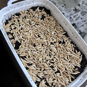 2025/5/11(日) 猫草。 成長が早い。 次からは虫対策の無機質の土で育てる予定。