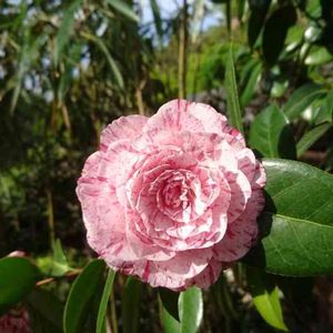 椿 染川 ソメカワ 縦の小絞り 検索でたどり着いた名前です。 間違ってたら教えて下さい。 赤は枝変りの墨染 中輪 千重咲き 花期 4〜5月