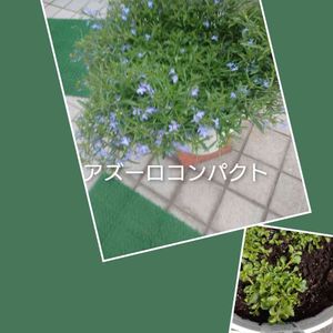 アズーロコンパクト! 去年こちらの植木鉢にはピンクを植えたのになぜか隣に植えた青、紫?は無かったのに咲きました♪