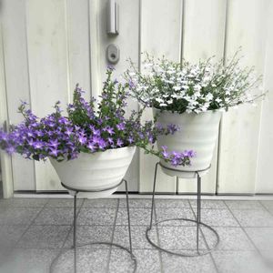 カンパニュラアルペンブルー満開💕初めてこんなにもりもりにできました❗勝手になってくれたって言った方が正解かな(^。^;)アズーロコンパクトとサフィニアフリルも私的には満足です( ´∀` )咲いてくれてありがとう✨✨