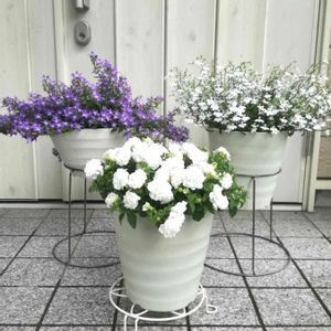 まんまるアズーロコンパクトのホワイトが、鉢から溢れるように咲いてきました😊 涼しげなスカイブルーと寄せ植えにしています。