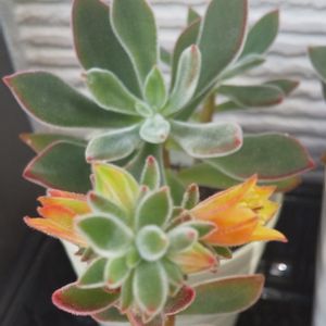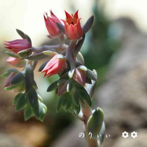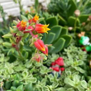 【エケベリア】 メキシコ・中米原産、ベンケイソウ科エケベリア属多肉植物 5、6cmの小型から40cm近くにもなる大型種まで、葉の形も様々あり種類は豊富。 正面から見た時の美しいロゼット型の姿は花のようで華やかな印象がある。 晩秋から春にかけて、日によく当たると葉がきれいな紅葉色に染まる。 初春から夏にかけては、小輪ながらも色鮮やかな花を咲かせる。 草丈・樹高:2~80cm 花色:オレンジ、黄色、赤、ピンク、複色 開花時期:2月~8月 下関市園芸センターにて