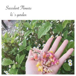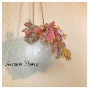 朝一にカットしたエケベリアのお花 ❁*.゚ とりあえず ハンギングにして飾ってみた ◡̈❁♡