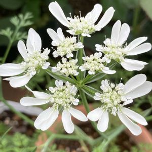 オルレアが咲いてます🤍 こぼれ種から咲きました 白い清楚なお花🤍🤍🤍 見惚れます🤗🎵💕 薔薇との相性バッチリ👍😃