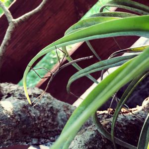 風は強めだけど、いい天気です☀️ 最近住み着いてるナナフシちゃん😊🎶