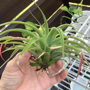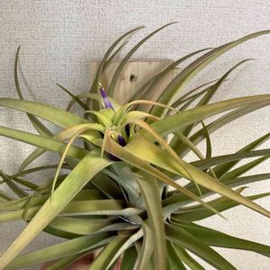 カピタータ エアープランツ2個だけあってシュシュしてたら咲きました!😆 いやー、この草?に似合わない派手さが良いですね☺️ 久々に緑以外があって嬉しいです!