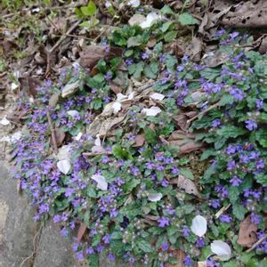 山でよく見かける紫の群生。 キランソウ カマノフタ。 たまに、自宅の庭にも出現する。 地獄の釜のフタとも呼ばれるが、漢方薬らしい。