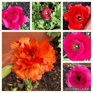 今朝も寒かったです!😣 帽子を被せていたのを、外しに行くと、赤いのがシャンとして、最初に開いていた花が散って、他の蕾がみな頭を上げてくれてました!!感激したです😀🙆🥰👍 先日霜にやられて、お辞儀していたのでね😥 お友達の居るところへ植え替えたんです。紫💜はその後に植えて、帽子を忘れないように被せました 大丈夫そうてす😀👍 来年も 此処でさいてもらうよう願っています。 🏷 ラナンキュラス