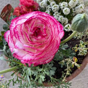 砂田園芸さんの無人販売で ラナンキュラス5鉢 マーガレット1鉢 ラナンキュラス 特に白が好きで、赤は予定に無かったけど、とても綺麗だったのこちらもお迎えしました🌸