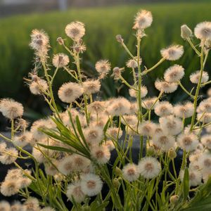暑さの中、公園の隅っこでアレチノギクは可愛い綿毛になっていました❣️ 花よりも綿毛の方が存在感があるようです😅