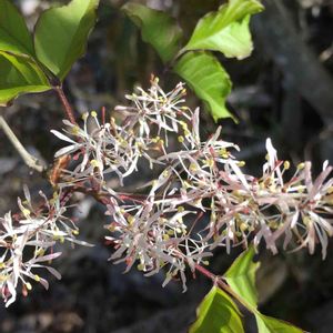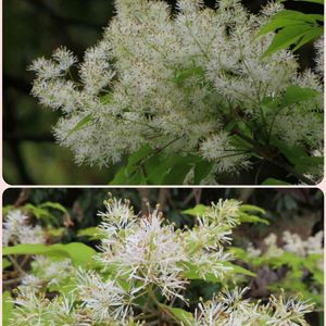 おはようございます😃 涼しそうなアオダモの花が咲いています。 別名がコバノトネリコ。 最近、私の近くの用水の石垣に沢山自生しているシマトネリコと同じ仲間です。 アオダモは信州の山をドライブすると、よく見かける木です。 成長が遅く、庭木としても上品で人気が高いそうです。 材は硬く、野球のバットなどに利用されると聞きました。 あのイチロー選手はこの木のバットを愛用したそうです。 白い花がブラシ状の穂を作ります。 花びらはとても細くて、散って地面に落ちると、白い針ののようです。 実はやはりシマトネリコと似た、サヤエンドウのような実がぶら下がります。 花の時期が、ヒトツバタゴ(ナンジャモンジヤ)と重なっているために、この花をヒトツバタゴと間違えている人がいました。😅